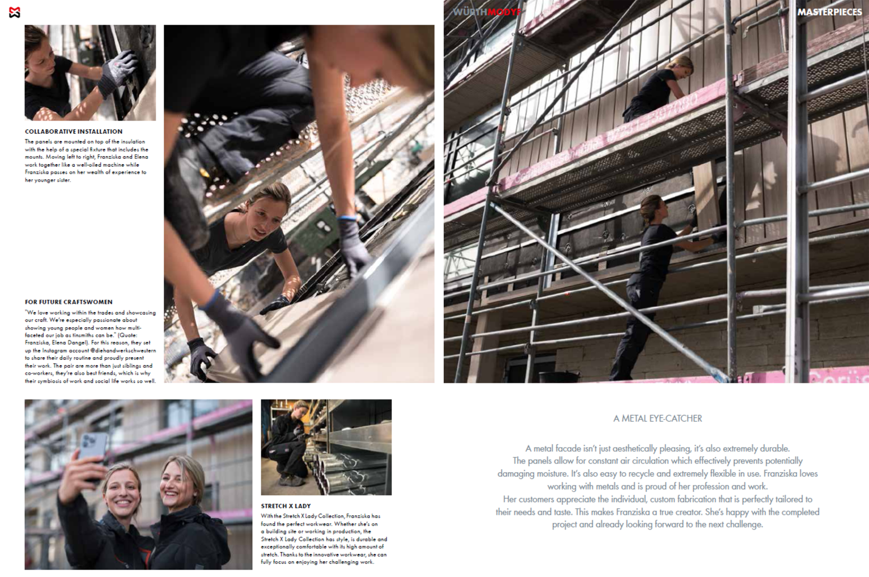 Franziska and Elena Dangel had the honor of working in front of this backdrop, together with the workwear company Würth Modyf, on a shoot for the master story of their new catalog. Würth Modyf accompanied the two for one day on the construction site and one day at our headquarter in Oberlenningen.